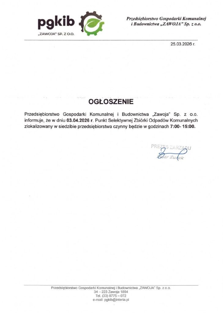 PSZOK – godziny otwarcia